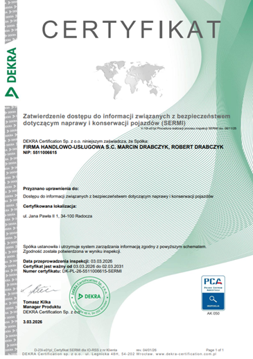 Bosch Car Service DRABCZYK z certyfikatem SERMI – najwyższy standard bezpieczeństwa